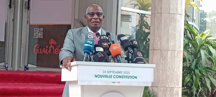 Après la publication des résultats provisoires, le mardi dernier par le ministrede l’administration du territoire, le Premier Ministre Chef du gouvernement, Amadou Oury Bah a fait un point de presse ce mercredi, 24 septembre 2025 au palais de la Colombe. Au cours devcette rencoontre, le Chef du gouvernement guinéen se dit satisfait de la victoire du Oui avec 89,38% des suffrages exprimés, soulignant que l’adoption de la constitution est une étape importante dans le processus de retour à l’ordre constitutionnel. Selon lui, le oui n’est pas la victoire d’un camp contre un autre, mais celle de la Guinée toute entière. C’est pourquoi il a profité de cette rencontre pour adresser les sincères remerciements du Chef de l’État et du gouvernement au peuple de Guinée pour sa mobilisation dans le calme et la maturité dont il a fait preuve lors du scrutin référendaire du 21 septembre 2025.