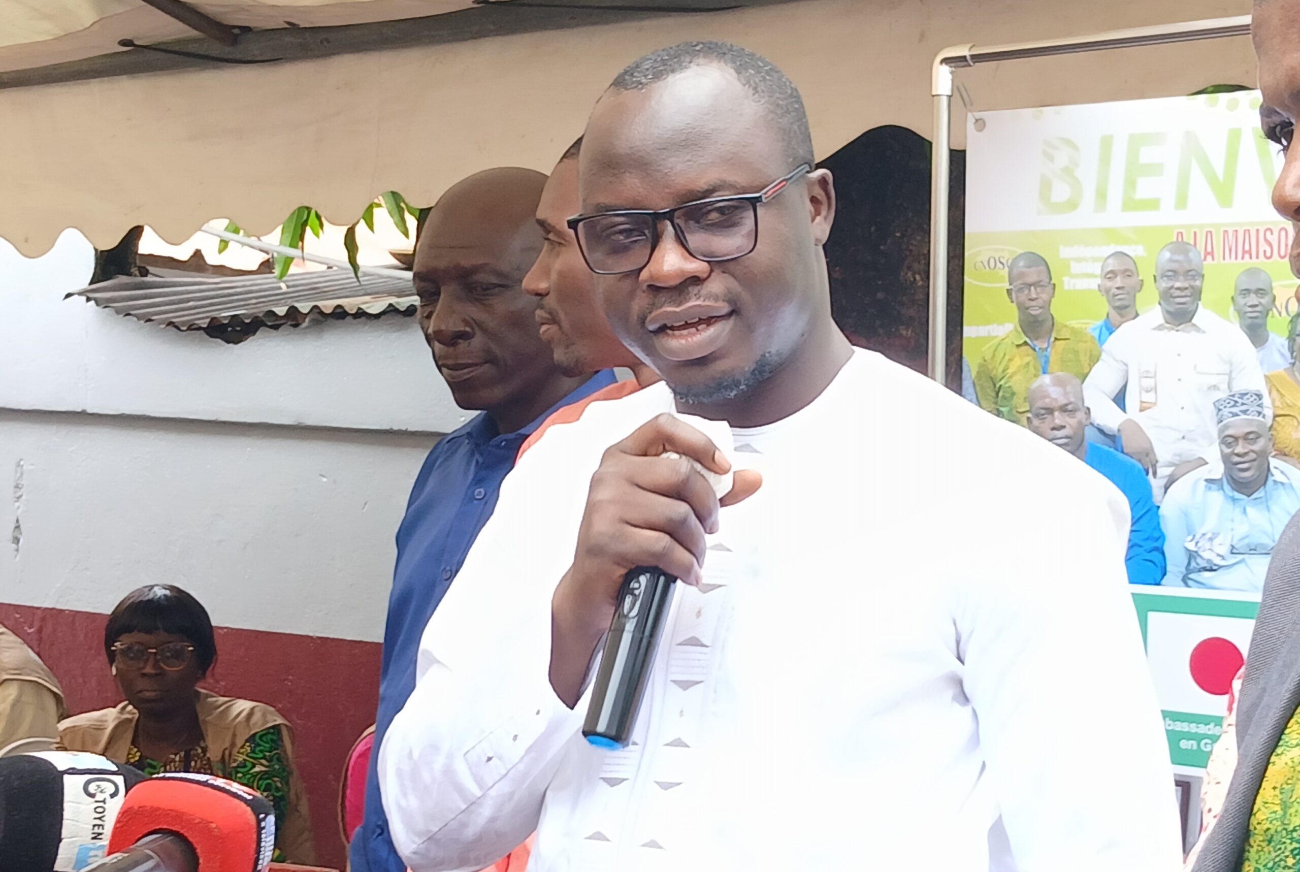 Aujourd’hui, de Conakry à Yomou, tous les nouveaux élus sont dotés  de gilets. Aucun membre d’un bureau ou d’une instance dans le pays n’est sans gilets. Ça c’est un effort qui relève de ce nouveau bureau, qu’il faut saluer.  En 100 jours, nous avons pu installer des panneaux de signalisation dans les grands carrefours pour faciliter aux citoyens et aux partenaires qui voudraient rendre visite ou qui voudraient travailler avec le CNOSCG, ou les citoyens qui ont des plaintes, à vite retrouver le CNOSCG. C’est aussi un effort à saluer.  En 100 jours, tout le pays, tous les bureaux ont reçu des téléphones Android, les 33 préfectures. C’est un effort aussi à saluer », a-t-il martelé.
