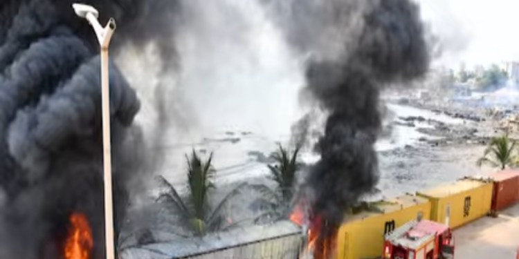 Un incendie d’origine inconnue s’est déclaré dans deux conteneurs aux abords du Camp Almamy Samory TOURÉ côté corniche sud, ce mardi 30 décembre 2025.