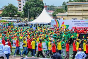 Dès les premières heures de la journée, le stade de Coléah a vibré au rythme du Mouvement Rouge Jaune Vert, parrainé par Ahmed Kanté. Une forte délégation l’accompagnait pour assister à un défilé haut en couleurs, regroupant les coordinations du mouvement issues de plusieurs communes de Conakry.