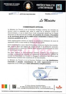 C’est une bonne nouvelle pour les retraités de Guinée. A partir du vendredi 29 août 2025, ils connaîtront une revalorisation de leurs pensions à hauteur d’une moyenne pondérée de 15%.