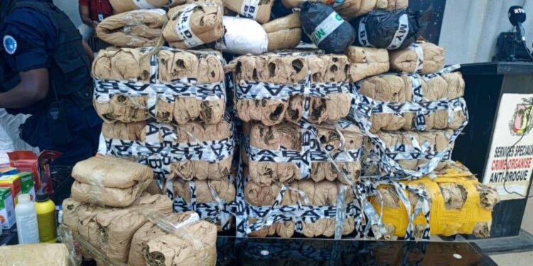 Cette quantité importante de chanvre indien a été récemment saisie dans la préfecture de Forecariah, par les services spéciaux de lutte contre la drogue et le crime organisé.