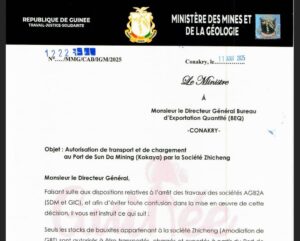 Alors que la société guinéenne AGB2A-GIC est toujours empêchée d’exploiter le permis de Guinea Brain Touch (GBT) et son port installé sur le périmètre retiré à Axis Minerals, une autre entreprise, Zincheng, vient d’obtenir l’autorisation d’exporter de la bauxite depuis le port de Kokaya, géré par SD Mining. Cette décision, signée par le secrétaire général du ministère des Mines et de la Géologie, relance les interrogations sur les pratiques du département, notamment sur la transparence et l’équité dans l’attribution des droits miniers.